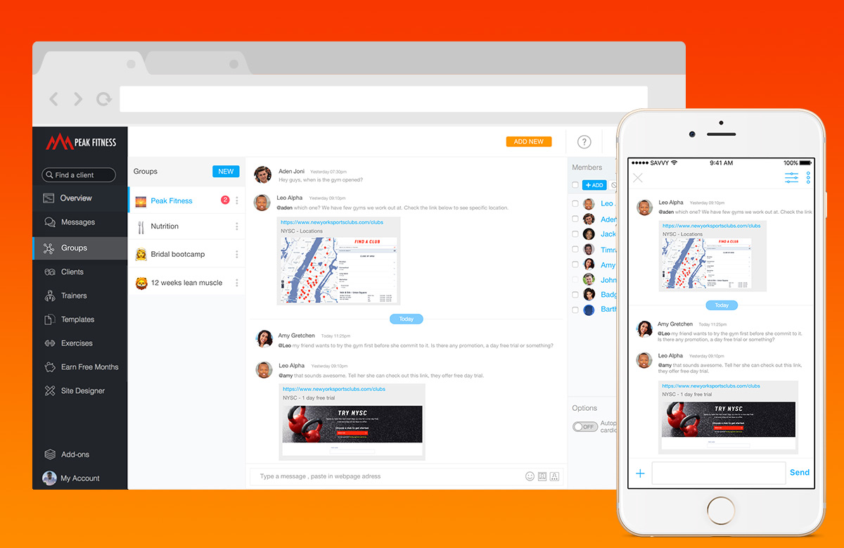 - Make clients feel proud of their achievements (sync workouts, cardio and personal bests to the group feed)
