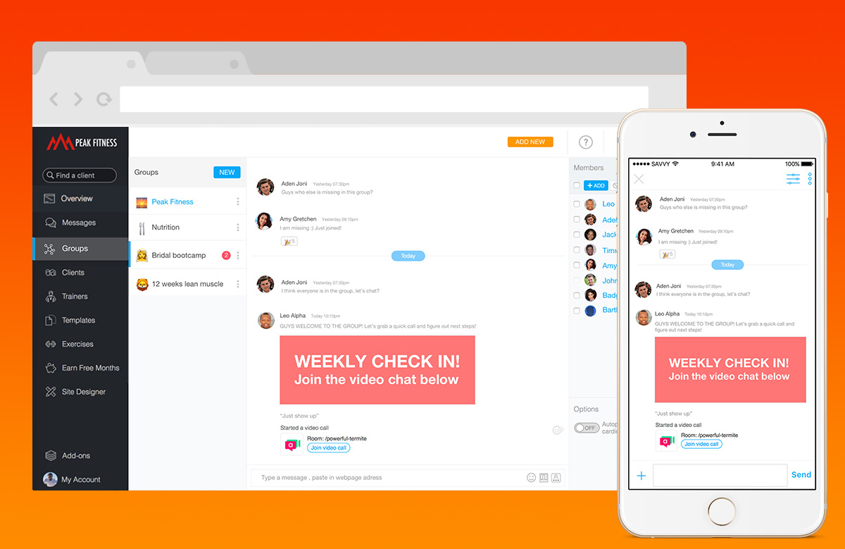 LIVE VIDEO CALL: We’ve integrated Appear.in into Trainerize Groups. It’s a simple video-call service that allows trainers to instantly create a video call with participants in the group. Now you can stimulate and engage your groups with live video in real-time!