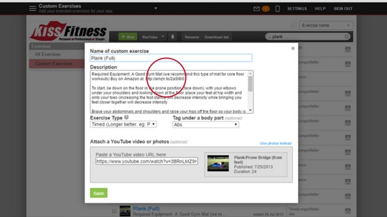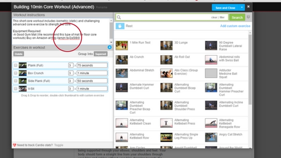 Example: Affiliate Link in a Trainerize Custom Exercise Video