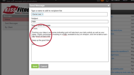 Example: Affiliate Link in a Trainerize Direct Message