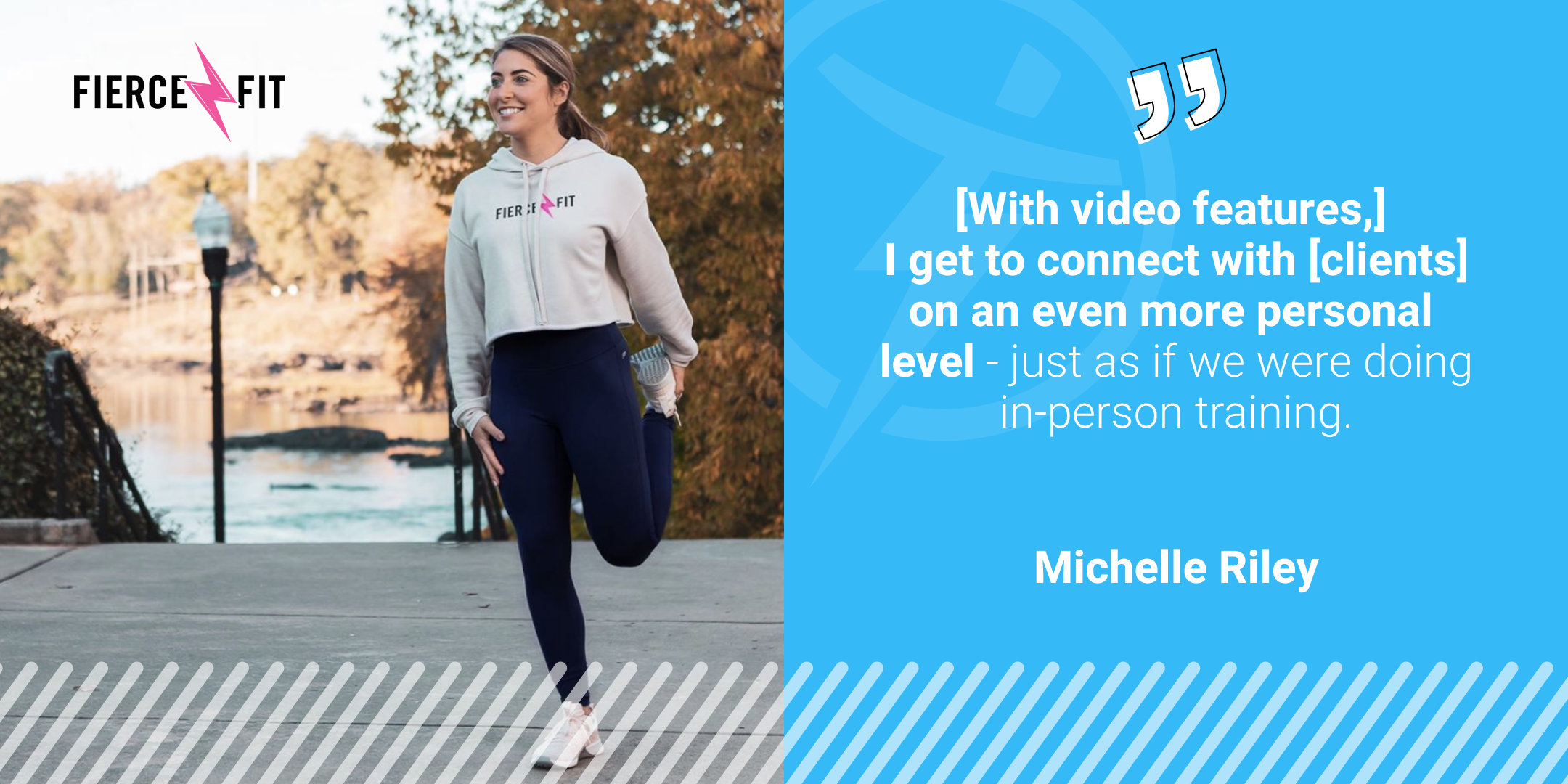 As an online-only personal trainer, Michelle Riley uses video training to get that face time in with clients for her business, Fierce & Fit—to build relationships, offer encouragement, and of course, critique technique!