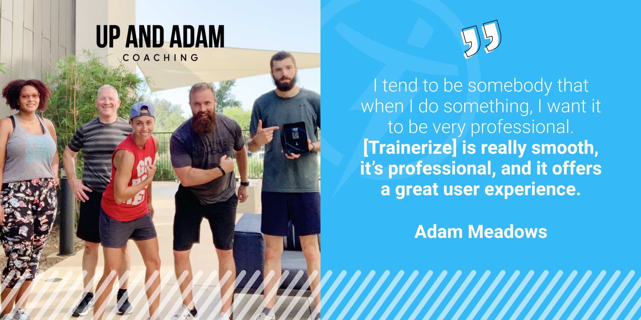 If you know one thing about Up and Adam, know that this businessman is also a funnyman. Want to know another? Adam’s business focuses on sustainable training—and using Trainerize, he helps his clients shift to healthier lifestyles.