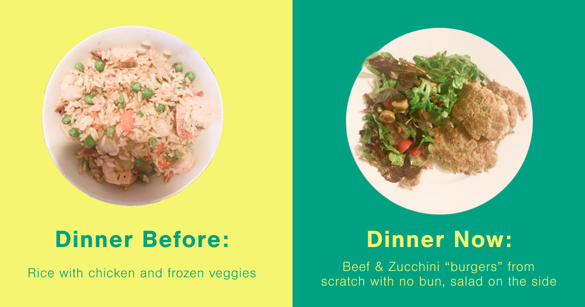 Effort level: Also very little! This is a typical adjustment—most clients struggle with portion sizes and not getting enough veggies in their diet. This one was so easy for me to help with.
