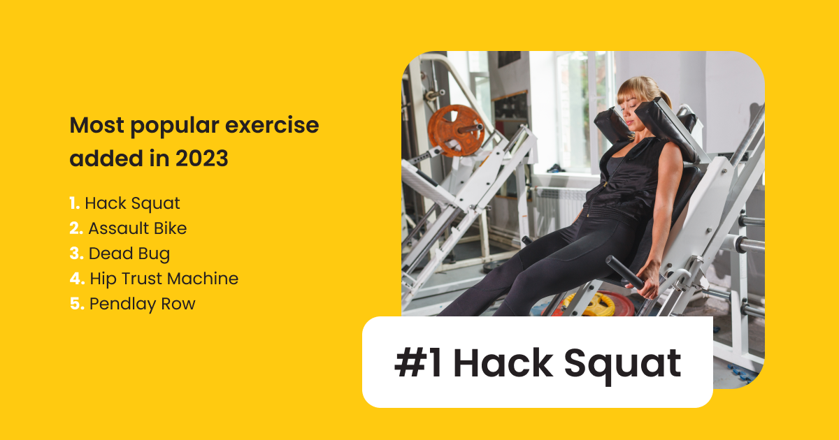 In 2023, thereâs a (few) new kids in town. The hack squat reigned supreme as the most popular gym exercise added by coaches. Kudos for keeping it fresh and new for clients!Â