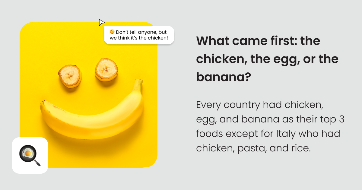 All around the globe, itâs a unanimous vote for chicken, eggs, and bananas as the top three foods tracked. Looks like the chicken did come before the egg in this case. đđĽÂ