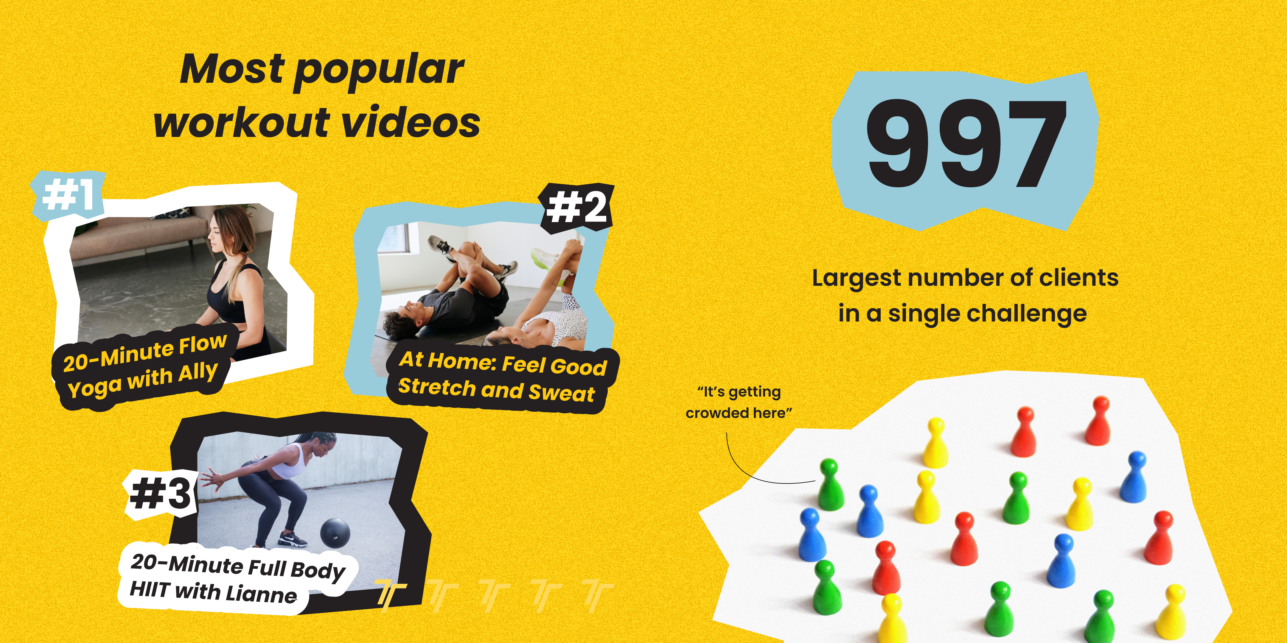 Your fave workouts? Flow Yoga with Ally, Feel Good Stretch and Sweat, and Full Body HIIT with Lianne. Haven’t tried the new on-demand workouts? You’re missing out! And shoutout to the client-packed challenge with 997 participants—bulk adding clients to challenges, anyone?