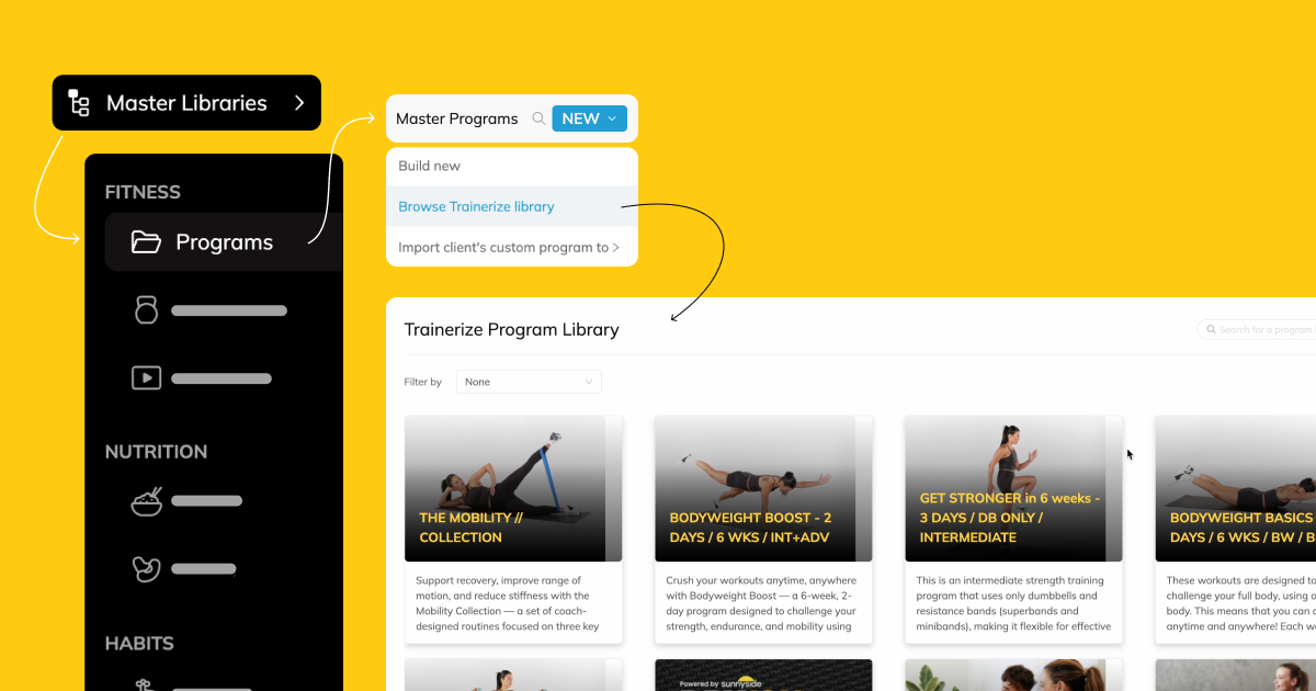 Navigate to: Master Libraries > Programs > NEW > Browse Trainerize Library and start importing today!