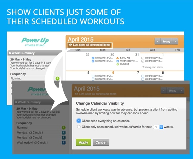 We know that sometimes you don’t want to overwhelm clients with the next 2-3 months activities or scheduling coming up and you just want to progressively show what they have to do week to week, to keep them coming back. This is why we came up with an awesome way to improve visibility in the calendar.