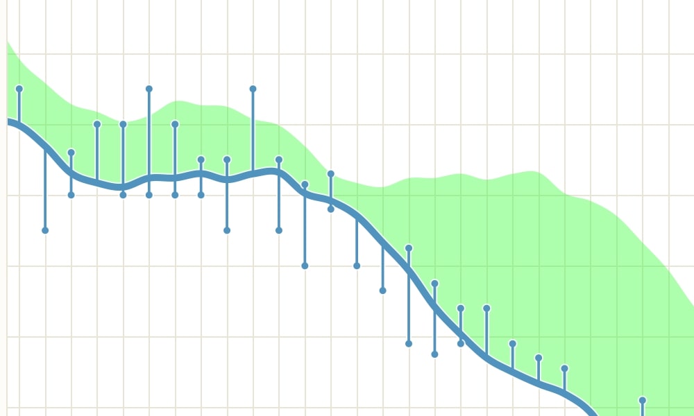 An example of the Happy Scale App. Notice that the daily fluctuations are present, but overall trend is clear (in addition to the positive green color).