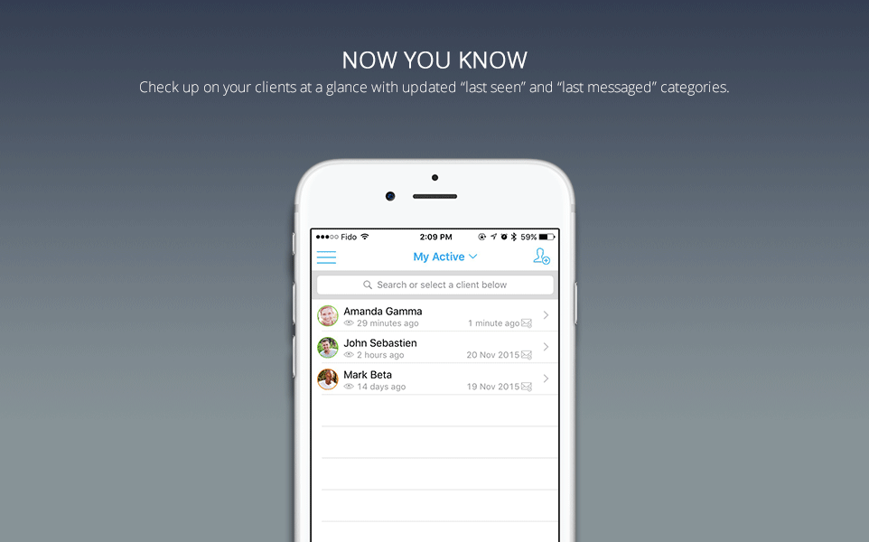 NEW CLIENT LIST CATEGORIES. Your new client list knows everything. You’ll be able to see the last time you got in touch and the last time you messaged your clients. This is a great way to find out who is engaged and great way to keep them committed by messaging them at the right time.