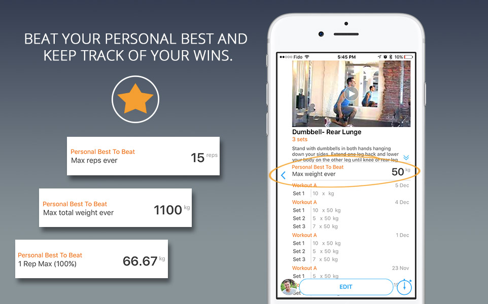 BEAT YOUR PERSONAL BEST. We are delighted to finally be able to track personal records for exercises! Trainers and clients can both view their best performance ever for an exercise – whether this means weight lifted or time performed. This feature is going to help keep your clients committed to tracking workouts with stats, and excited to try and maintain and exceed their best performance.
