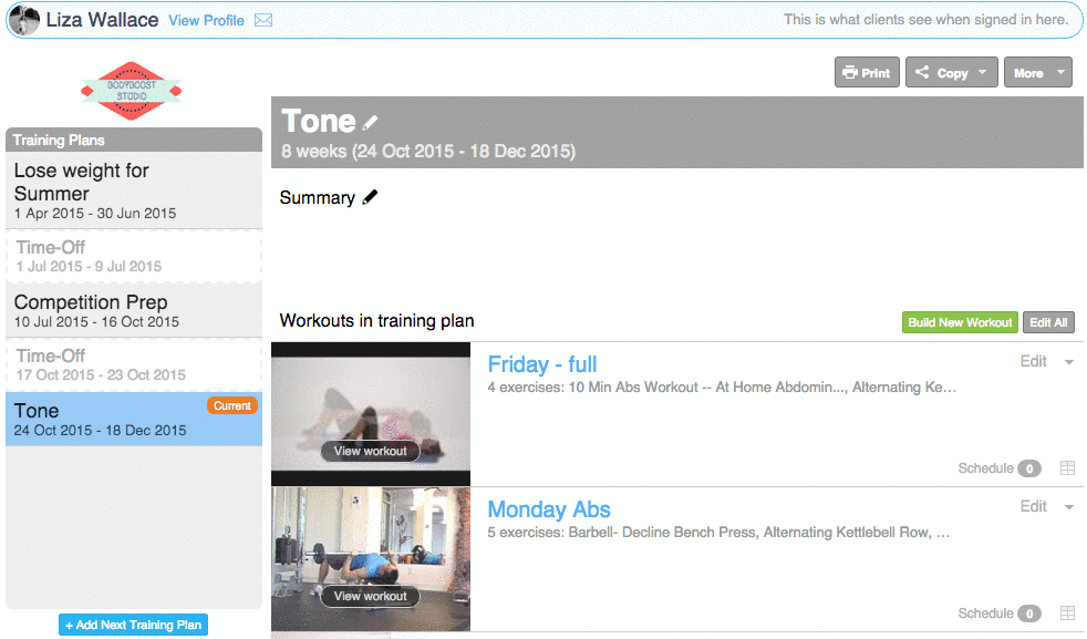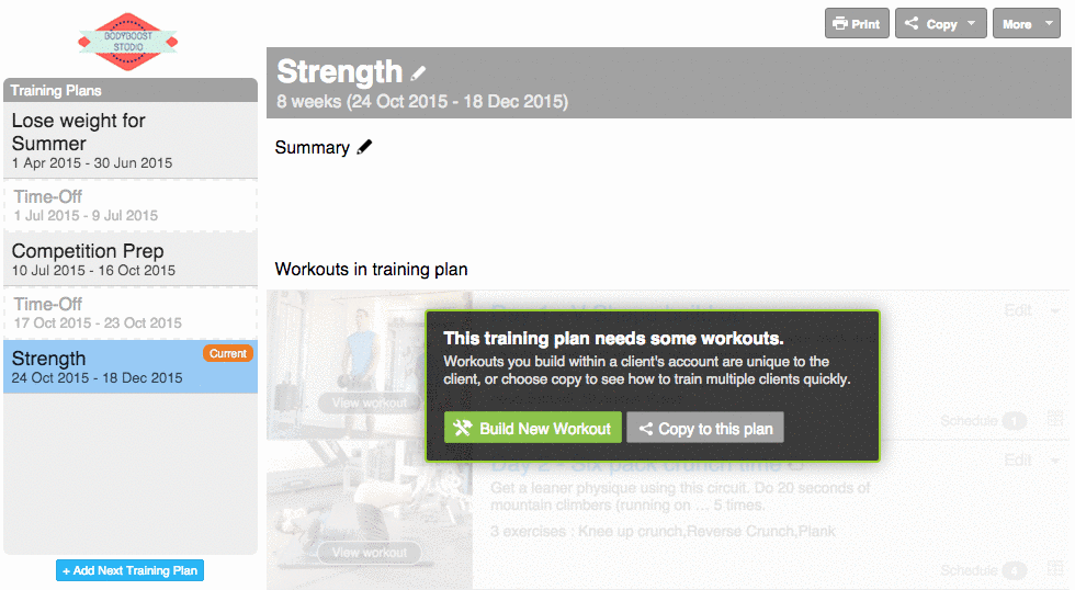 INTRODUCING MULTIPLE TRAINING PLANS. This feature is finally done! We are excited to announce one of the most requested features, the ability to create multiple training plans, is now available! Trainers can now plan in advance and stay on top of their client fitness history. Having multiple training plans is a key feature for phasing, as trainers can reference previous training plans and edit them based on new targets.