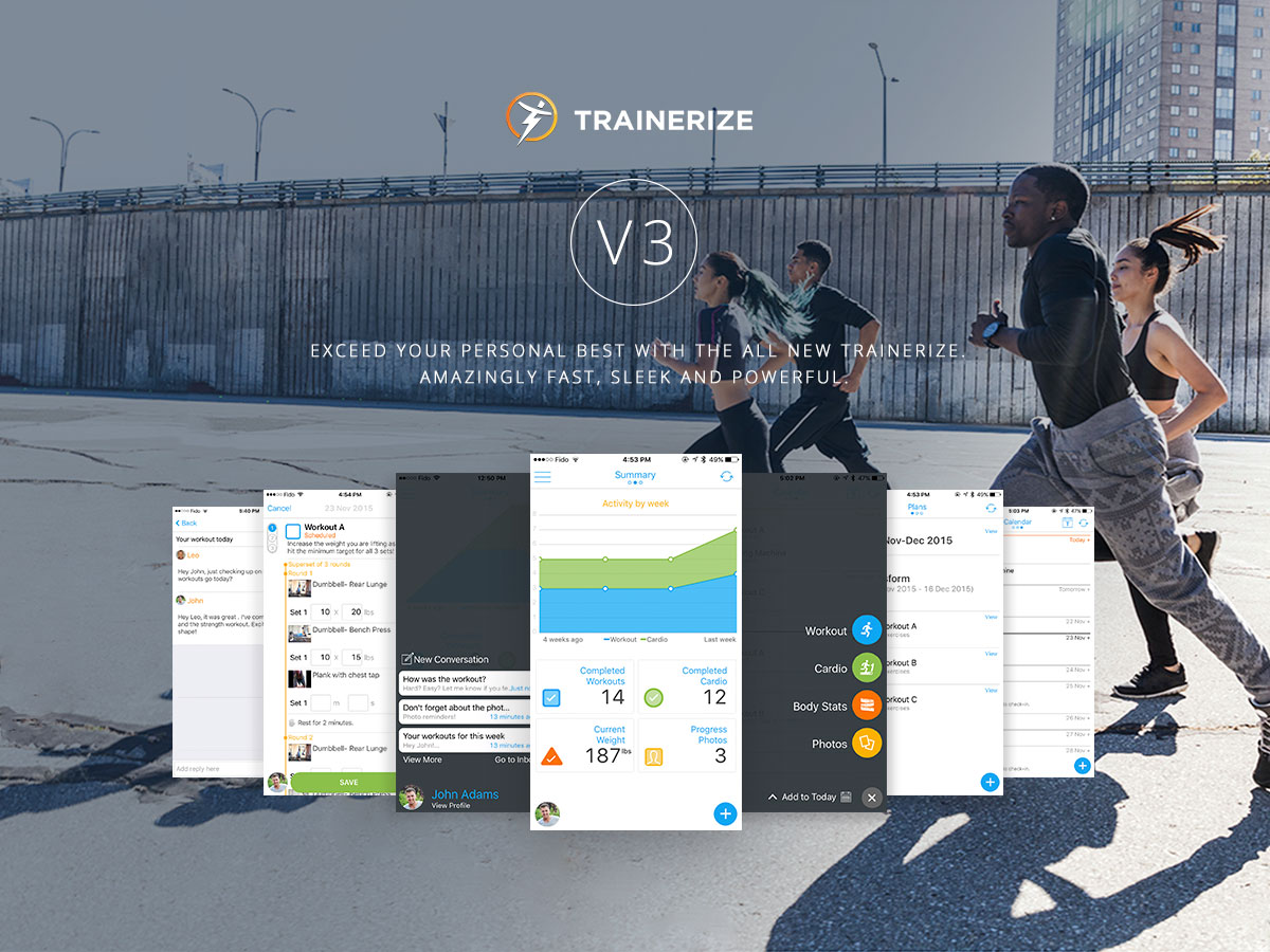 We are extremely excited to introduce you to the brand new Trainerize V3. The new Trainerize empowers fitness coaches and studios to better manage their business on the go every day, and at the same time, allows clients to achieve better results by using the app to keep track of their goals, their personal best and their overall fitness progress.