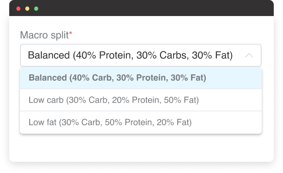 This way you can ease a client into something like low carb, low fat, or even teach them what a balanced meal plan looks like. Give them a snapshot (you can choose from the number of meals per day and how many sample days you want) and for some it might just be enough to start there. Getting ideas on what a low carb meal looks like is a good way to get clients comfortable with the idea of eating less carbs on some days and more on others. You can also teach them not to demonize carbs, especially depending on their body and goals.