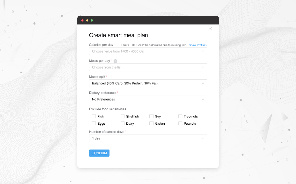 A lot of clients read and hear about certain diets, or discover they are sensitive to certain foods but don’t know where to start. Trainers can quickly whip up a meal plan with the exact specifications they want and let their clients give it a go!