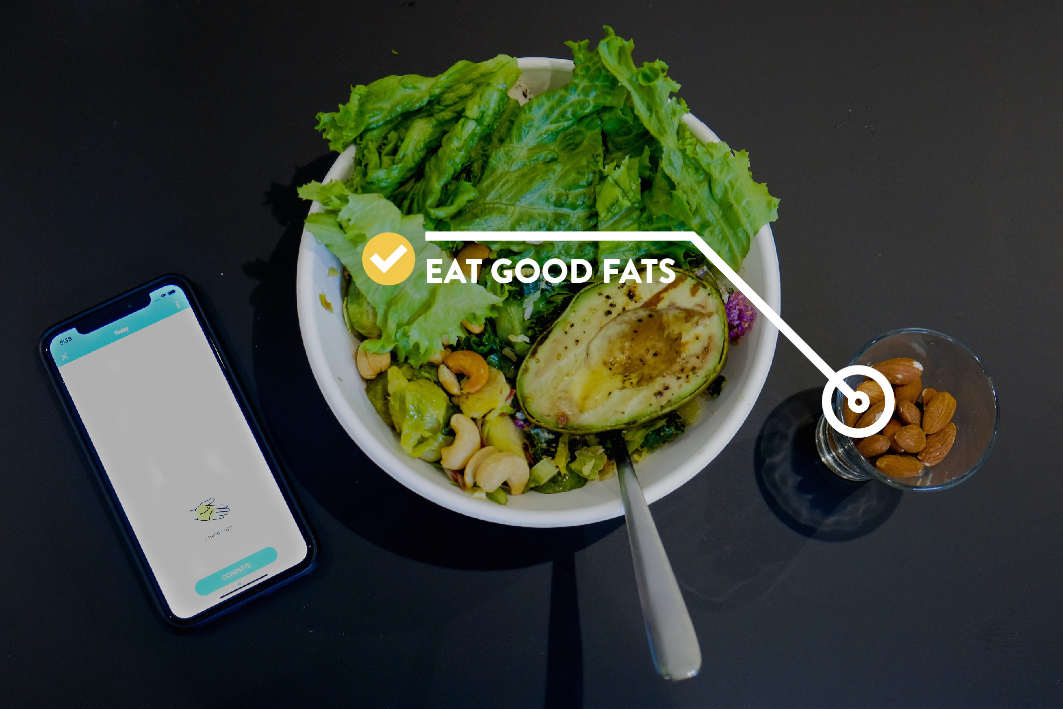 The challenge behind getting your clients to introduce this habit is twofold. The first issue is education. Clients need to know what foods have what type of fats in them. For example, does an avocado have saturated or unsaturated fat? (FYI, It actually has both, but predominantly unsaturated fats—more specifically monounsaturated). The second challenge is assisting your client in forming the habit itself.