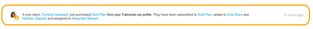 Need more information or want to engage with a client or group? Interact with client activities as they happen by clicking on individual events on your Trainerize Feed. Quickly hop from the feed into client profiles or programs or instantly jump to Trainerize Pay or business automation settings.