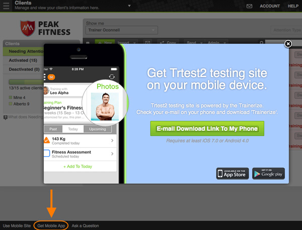 We worked on making it as simple as possible for clients to download the Trainerize mobile app. Download app buttons for iOS and Android devices are available in the Welcome mailer and also inside the status bar by clicking on “Get Mobile App” links. This will give clients the option to email the link to their phones, so they can start following their training plan and communicate with trainers right away!
