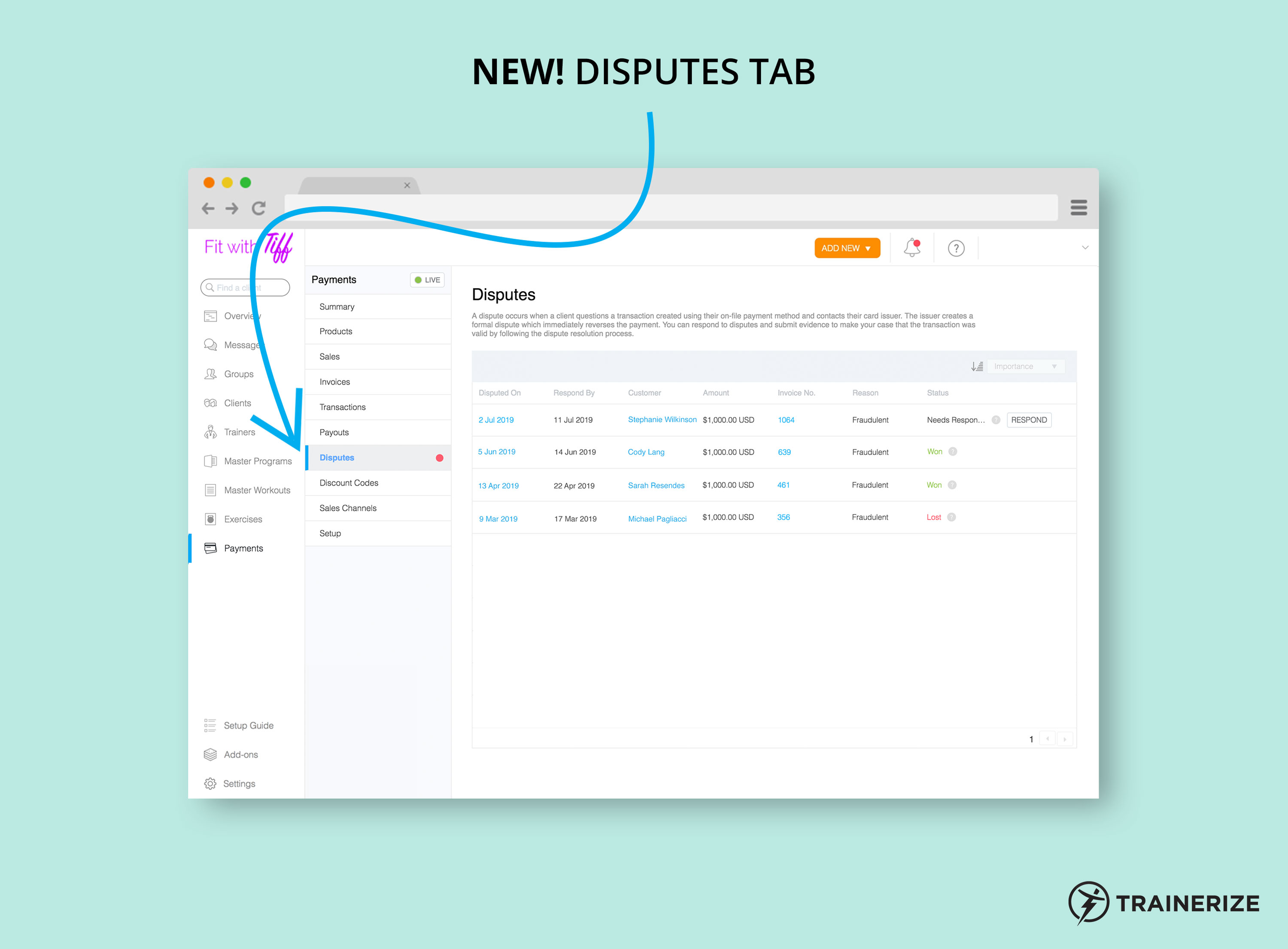 Now, Trainerize Pay also helps you manage credit card disputes.