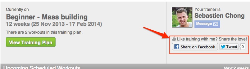 We’ve made it even easier for your clients to share their experiences with you on Facebook and Twitter. We’ve made Facebook and Twitter sharing controls more visible, right on the first page when they sign in! Now its very easy for your clients to gush about how great you are as a trainer.