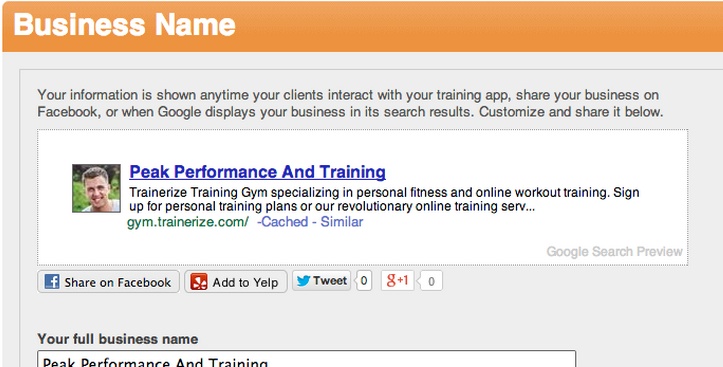 We even made sure that you, the trainer, can preview how your information will look when a client shares your business on their Facebook timeline, or when your business shows up on Google. We created a preview that allows you to interactively customize your description and keywords. Be sure to use the Share features to further extend your social media reach. The more shares, the more visibility for your business.