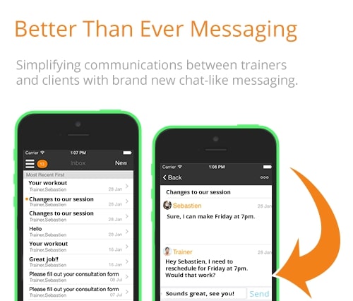 Faster messaging and much more. Among the new features released in the mobile app, we included a smoother and faster messaging experience. This is a core feature in Trainerize that we improved, and now you can communicate with your clients on the go with chat-like messaging.