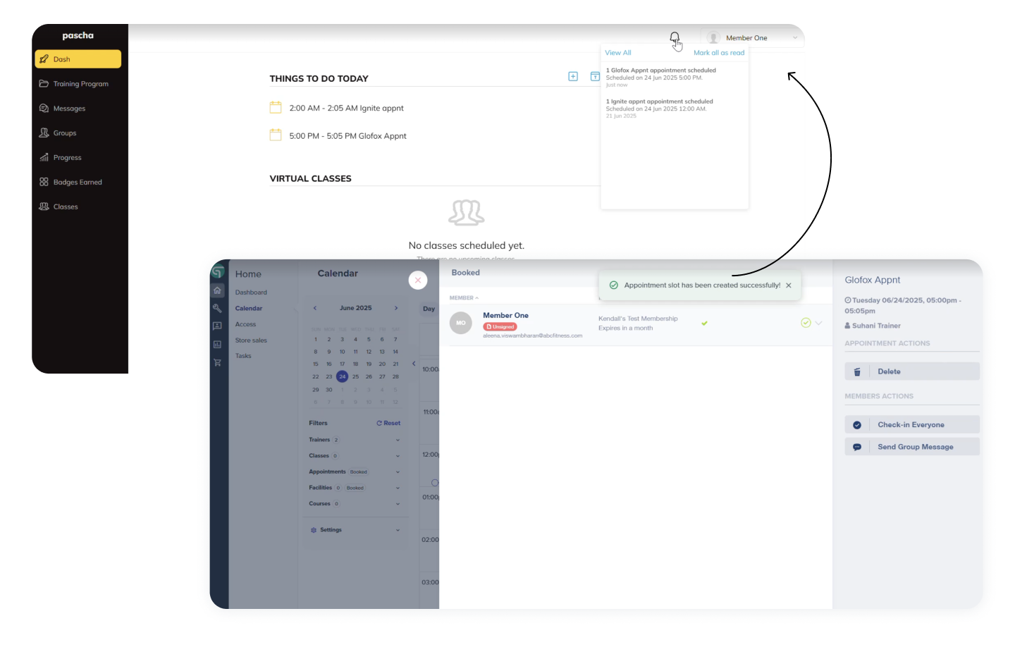 Appointments booked in ABC Glofox now automatically appear in the ABC Trainerize calendar, giving your coaching and admin teams full visibility into each client’s in-person sessions. This makes it easy to stay aligned, track client activity, and ensure that your members receive a cohesive experience across both platforms. Whether you’re tracking assessments, consultations, or recurring appointments, everything is now in one place.