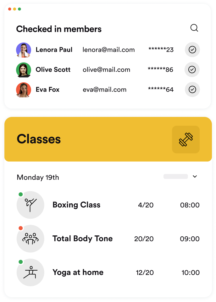 - Streamline check-ins and keep members updated with live schedules on your website and app