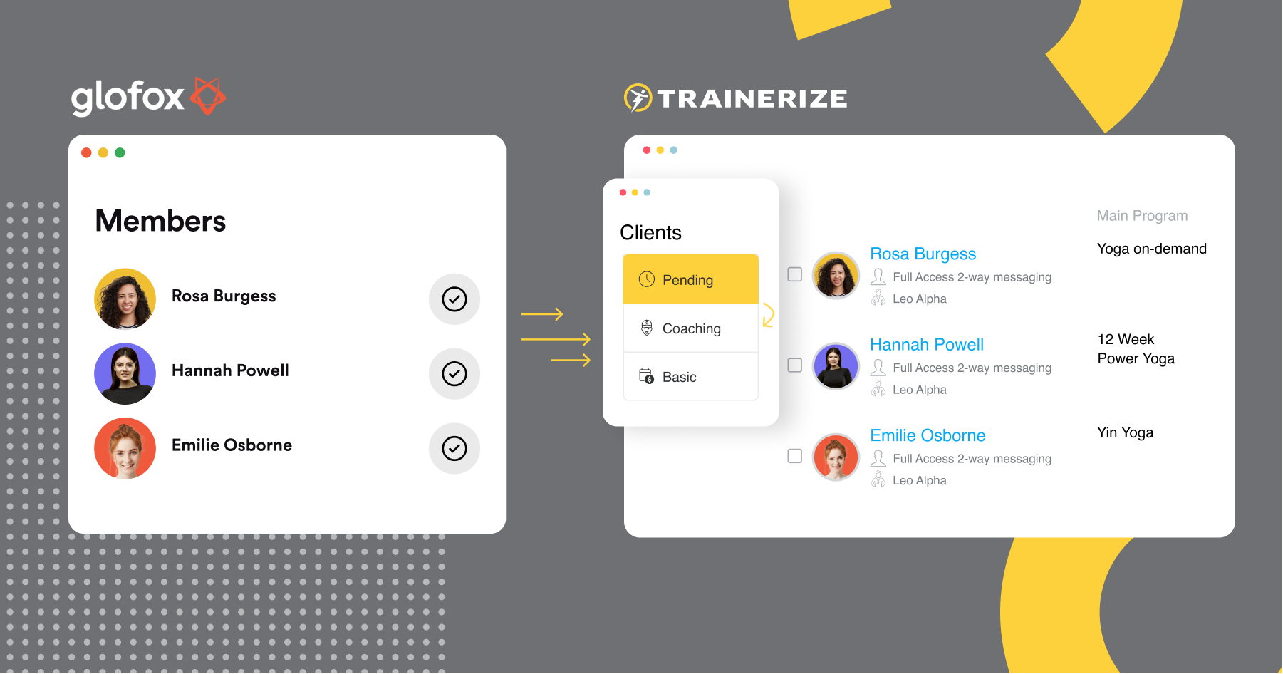 We’re excited to introduce to you the start of the Trainerize x Glofox integration, beginning with a simple, yet powerful feature. You’ll be able to sync Glofox members in real-time directly into Trainerize, where they’ll show up as Pending clients. From there, you can activate them as a Coaching client to deliver digital coaching and trigger an email invitation for them to access your app. Check out this help article to learn more.