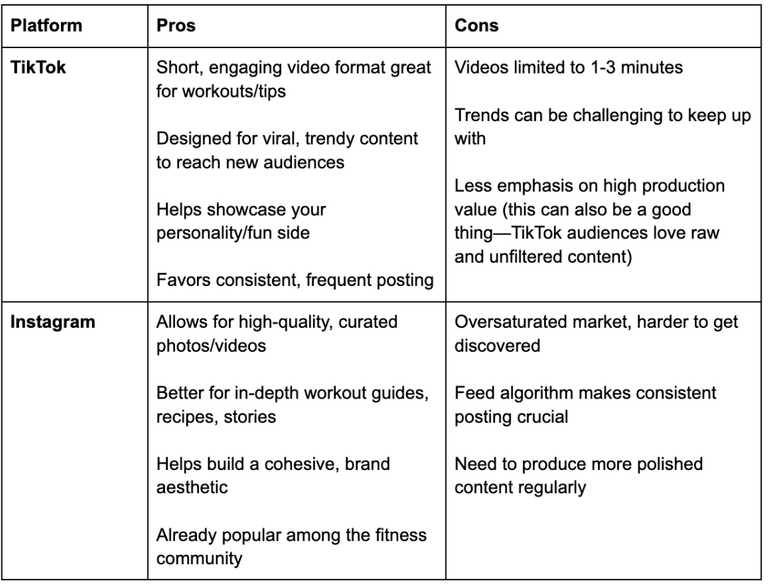 Frist, as a fitness pro looking to build a personal brand, deciding which social platforms to focus on is crucial. TikTok and Instagram are currently two of the biggest players, but they cater to different styles of content.
