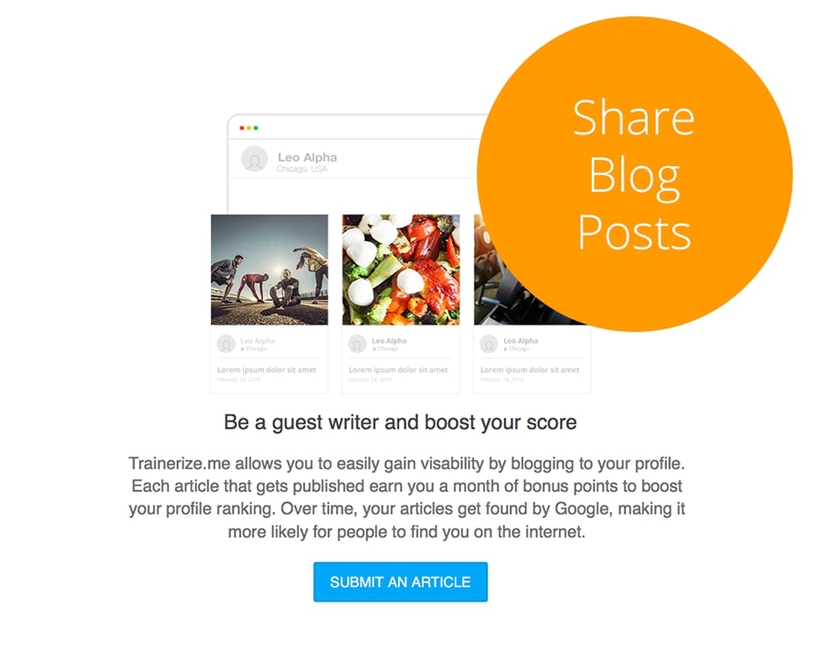 Providing captivating information and sharing your knowledge is an excellent way to attract visitors to a profile page. Personal trainers can use Trainerize.me to show off their training expertise, nutrition background, or their brand to get discovered by clients worldwide! Trainers can submit articles to be featured on the Trainerize.me blog and on their own profiles.