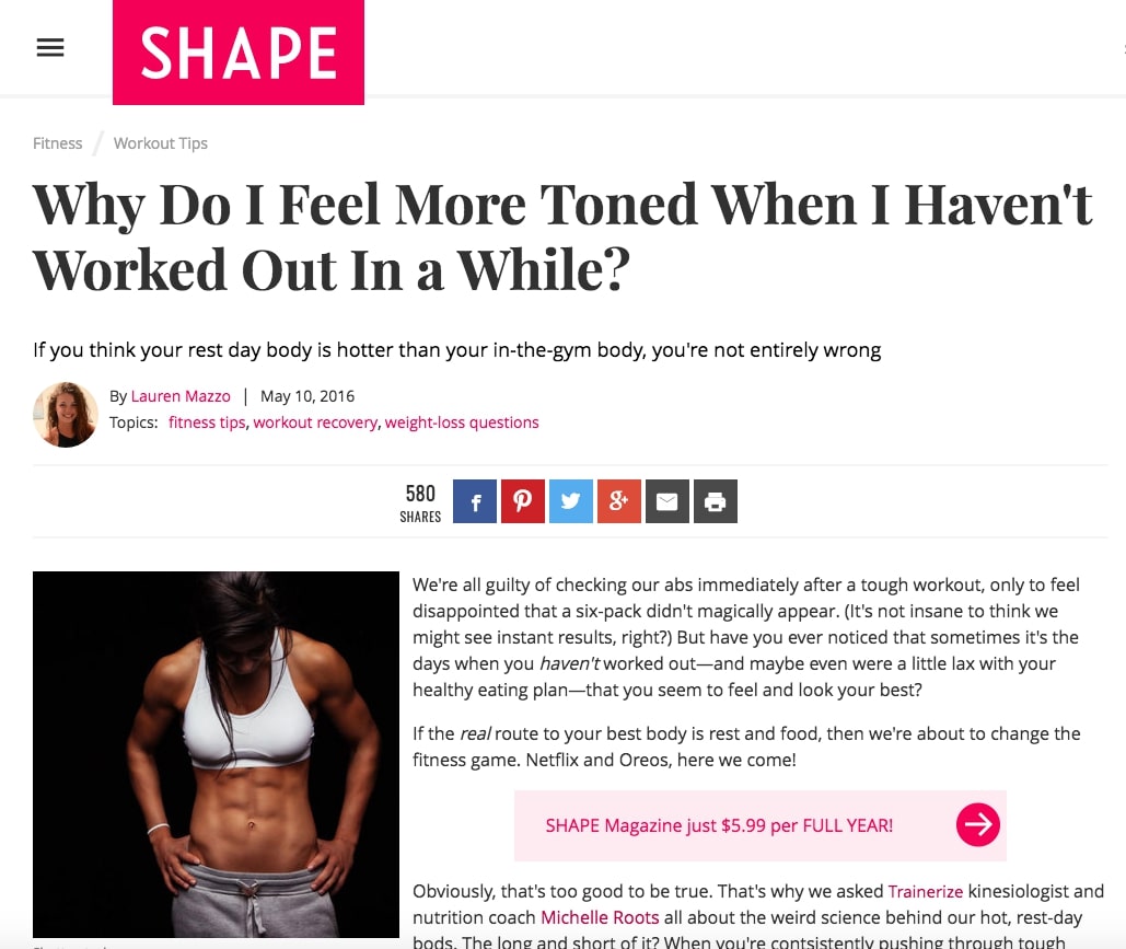 Our resident fitness expert, Michelle Roots, was recently interviewed by Shape Magazine about why our bodies feel more fit and toned on our rest days, in between our tough workouts.