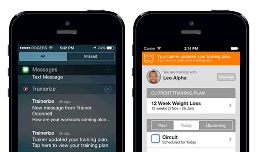 Easily get new message notifications and tap to quickly reply. Whenever a trainer updates any training plans and signs out, clients are notified of the changes and their app automatically refreshes. With the new apps, clients won’t miss another message because it’ll come straight to the mobile app in a push notification!