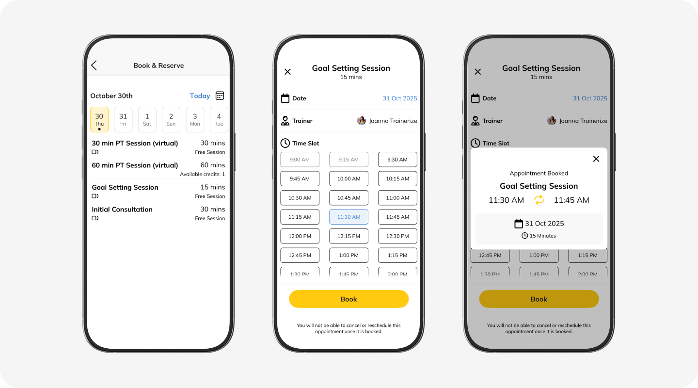 The booking experience has been refreshed with a clean layout, clear cues, and a more intuitive flow. Clients can now browse, select, and confirm classes or appointments with fewer steps and less friction. This modernized design makes scheduling feel smoother and more streamlined, helping clients stay organized and confidently book the sessions that keep them on track.