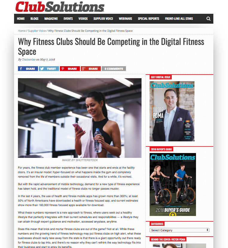 In a recent article published in Club Solutions Magazine, Trainerize shares insight into the benefits of fitness technology and why fitness clubs and gyms should be getting on board with this high-tech wave.