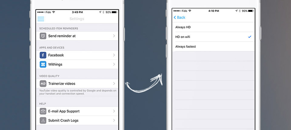 Trainers and clients can now set the playback quality for the exercise videos to: “Always HD”, “HD on Wifi” or “Always fastest”. This ensures the video playback is optimized based on client needs and connectivity. While we were here we also touched up the Settings menu and made it simpler and more visual.