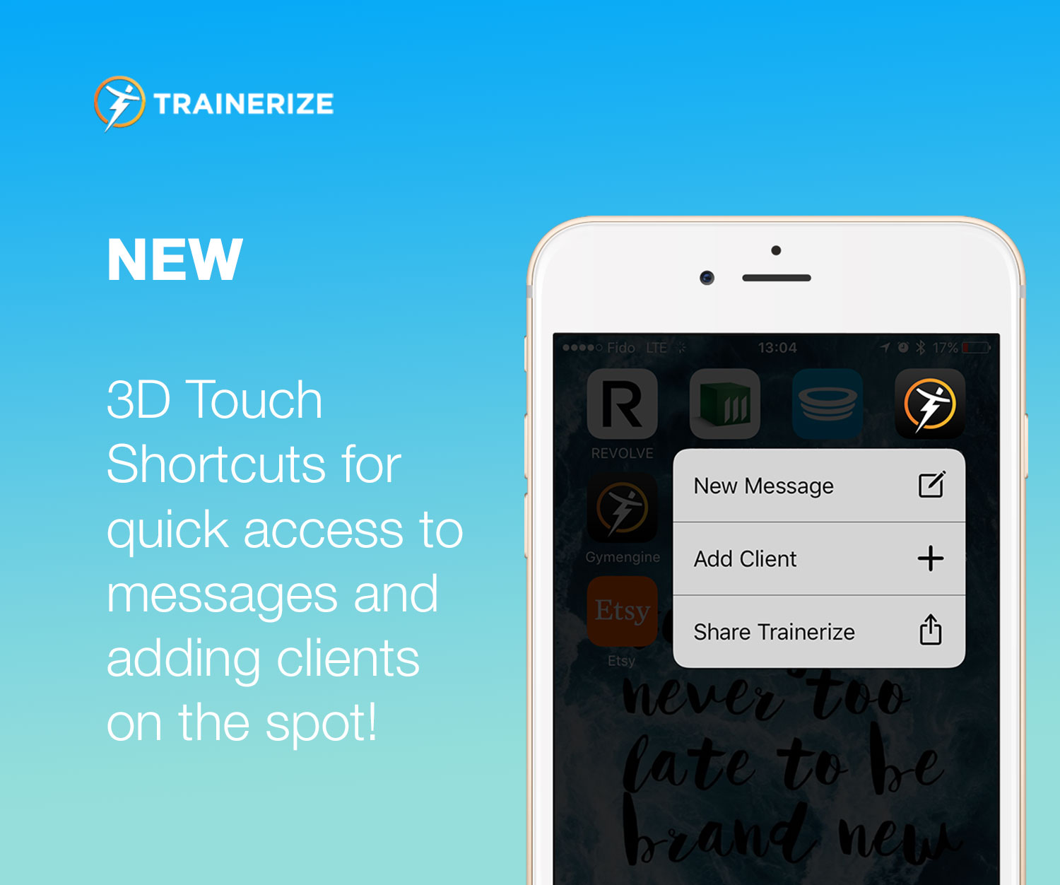 3D TOUCH SHORTCUTS (iOS ONLY). Want to quickly send a message to a client? Or maybe you meet someone who wants to train with you and you need to add them on the spot. There are now 3D touch shortcuts available for trainers to create a new client or compose a new message from your device’s home screen, just by tapping on the app.