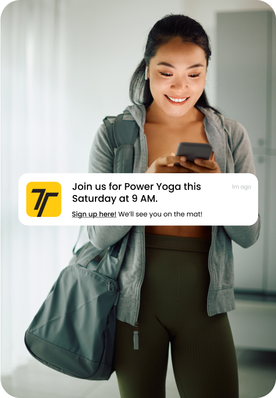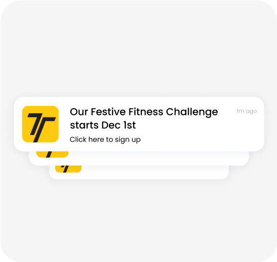 Reach every client instantly with in-app banners and push notifications that keep them motivated, informed, and excited to take action.