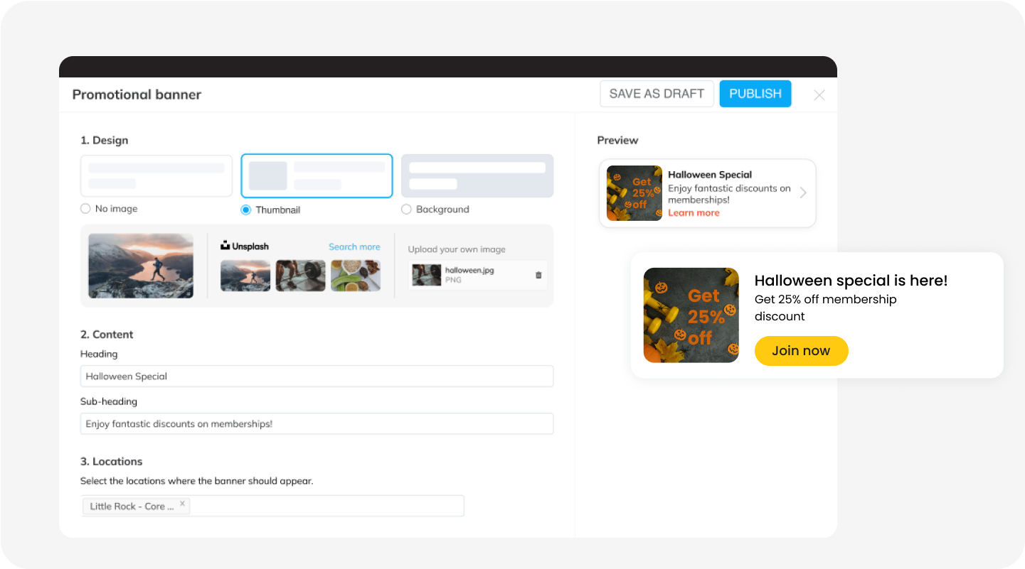 - Use Promo banners to highlight promotions like membership discounts, seasonal offers, campaigns, etc.
