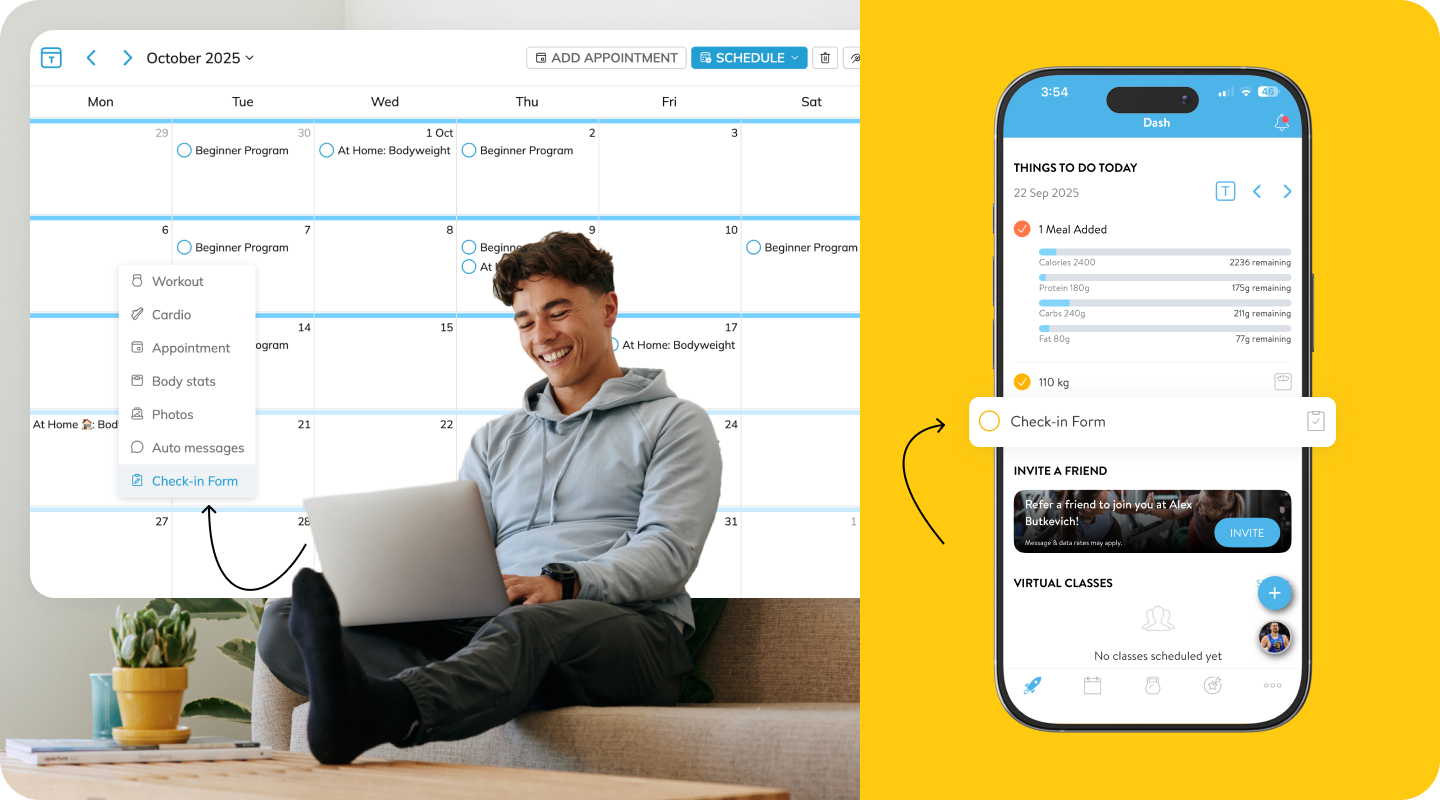 You told us you needed a better way, and we listened. That’s why we built check-in forms, a built-in, customizable tool that helps you engage smarter, track meaningful insights, and transform your clients’ lives.