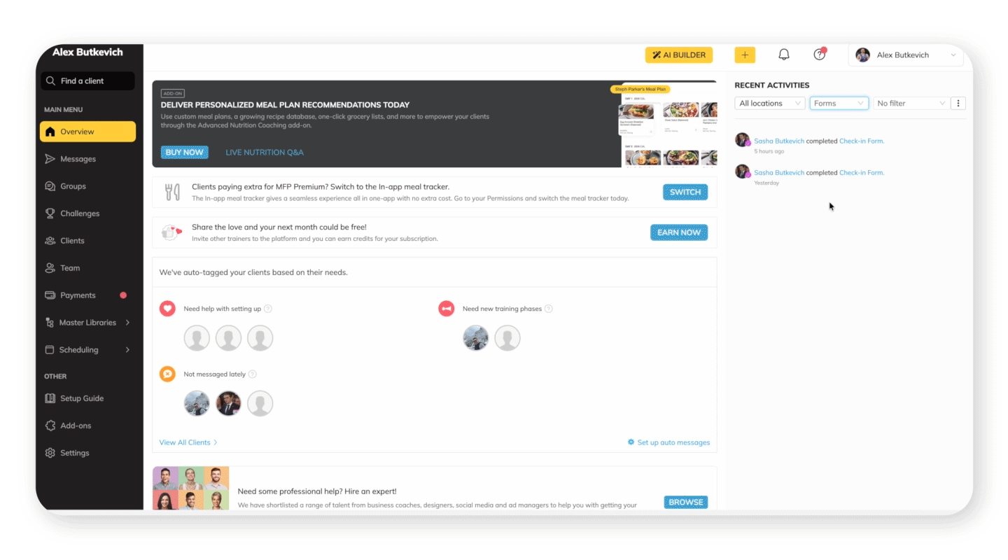 - Keep clients engaged and accountable: Built-in weekly or monthly check-ins createconsistency and motivation.