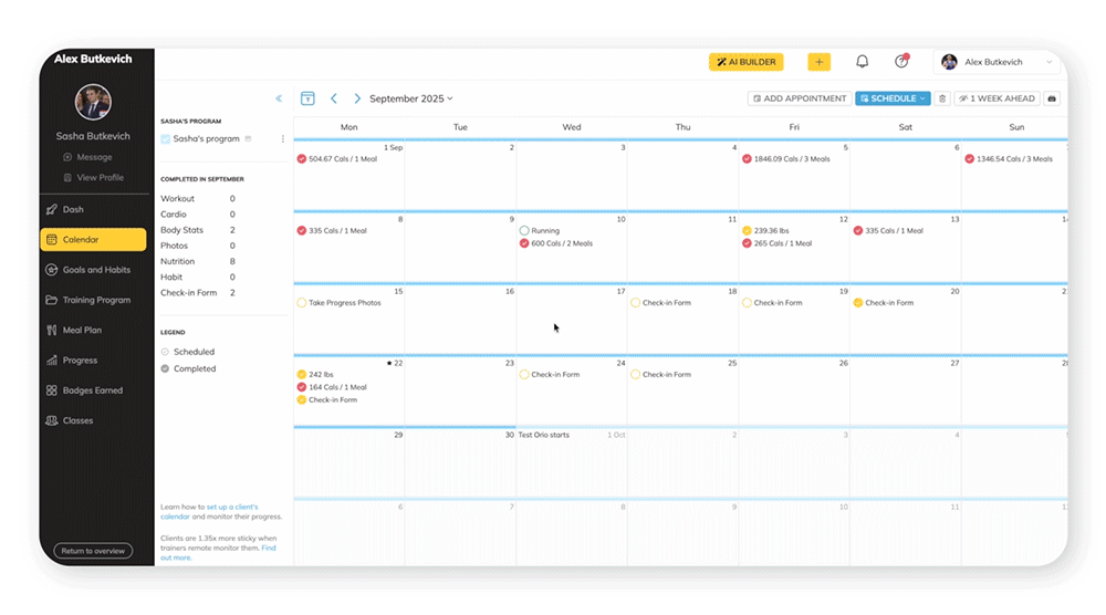 You can now schedule check-in forms directly in a client’s calendar or as part of a Master Program calendar. This allows you to build check-ins into your workflows and ensure a regular cadence of communication. By automating check-ins, you can keep clients engaged and accountable without adding manual admin work.