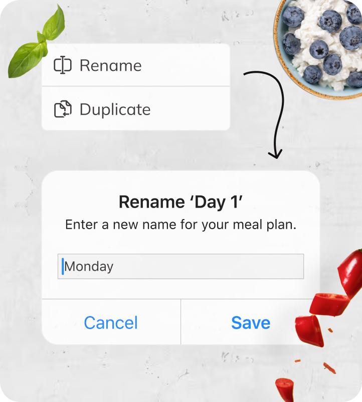 Once you’ve built a plan that works, you can use it again. Duplicate plans for the same client, or copy them across to other clients with similar goals—then make small adjustments where needed. This helps you deliver personalized nutrition without rebuilding every time. You can also rename meal plans, making it easier to stay organized across different clients, phases, and goals. You can also save plans as drafts while you’re working, so you can come back, refine, and publish when you’re ready.