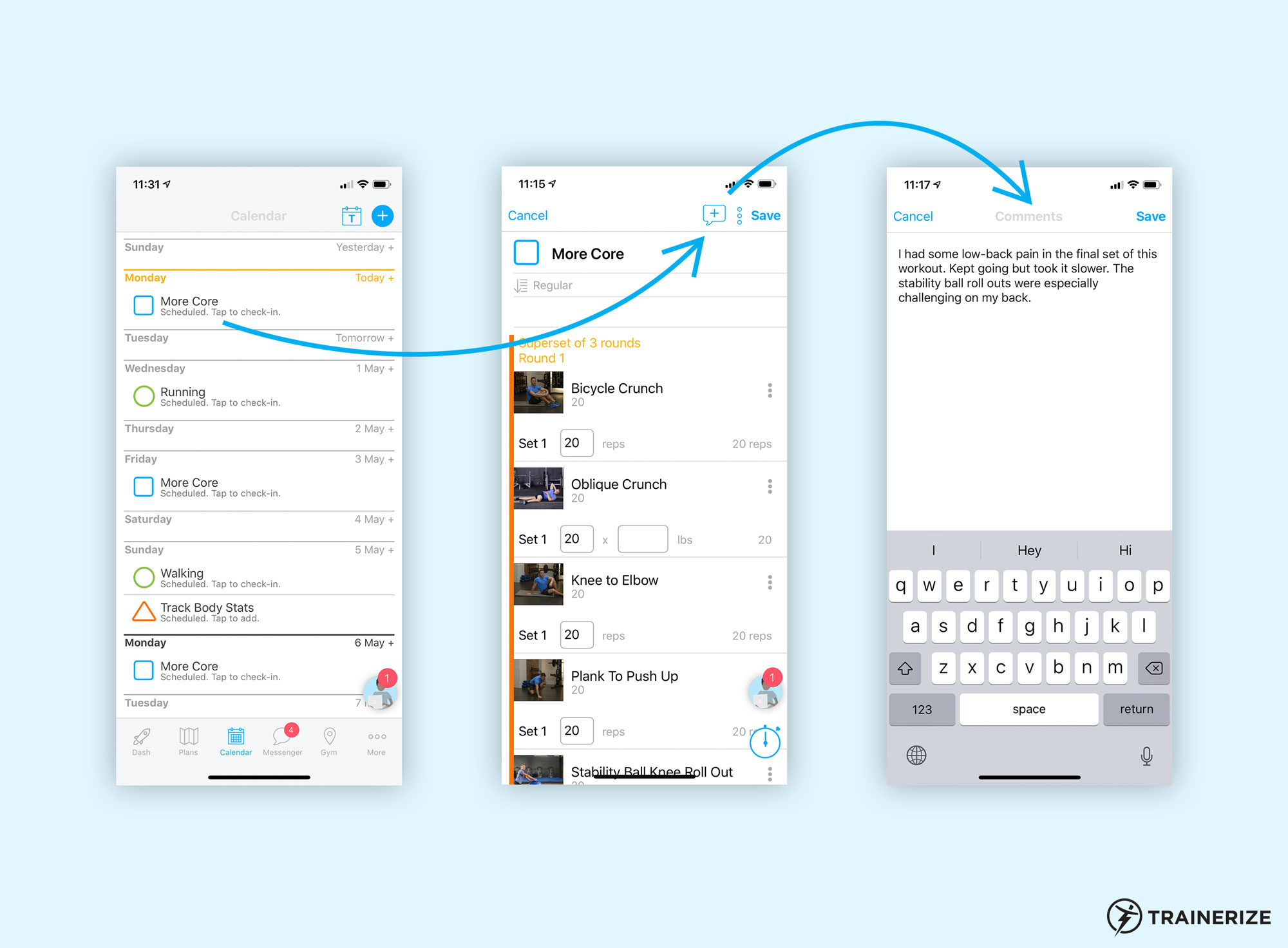 But there’s more! Communication is a two-way street after all, so in place of notes, clients can now add comments to their workout and cardio activities!