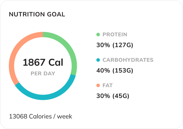 See your clients’ weekly caloric targets, plus their recommended macro breakdown. Which gives you an instant snapshot of their personalized goals, so you can keep their meal plan aligned with what they’re working toward… Whether that’s fat loss, muscle gain, maintenance, or simply better nutrition.