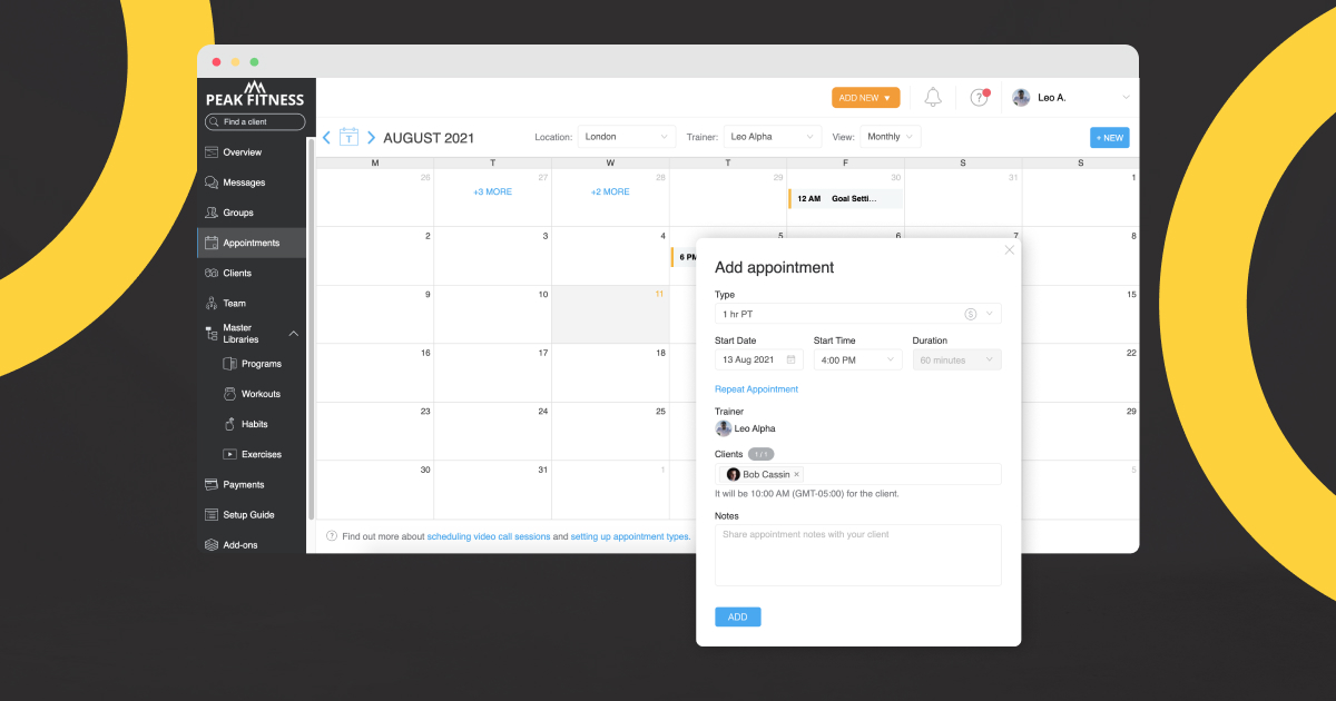 As their trainer, you’ll get a notification each time your clients cancel their session. That way, you can stay up to date on changes to your own schedule, know that you’ll need to reschedule their session, and perhaps even book in a session with a different client for that cancelled time slot!