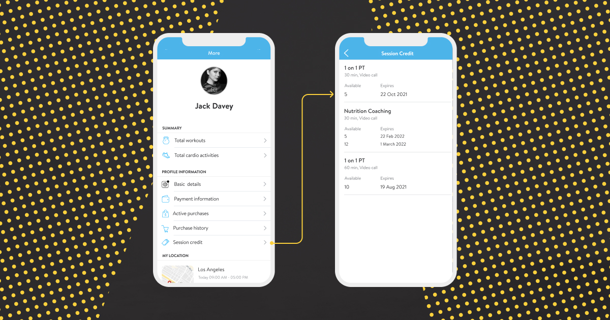 At any point in time, your clients will be able to view their session credits on both the mobile app and on the web. They’ll see when their session credits expire and get a sense of when they should use them up by and expect to make another purchase!