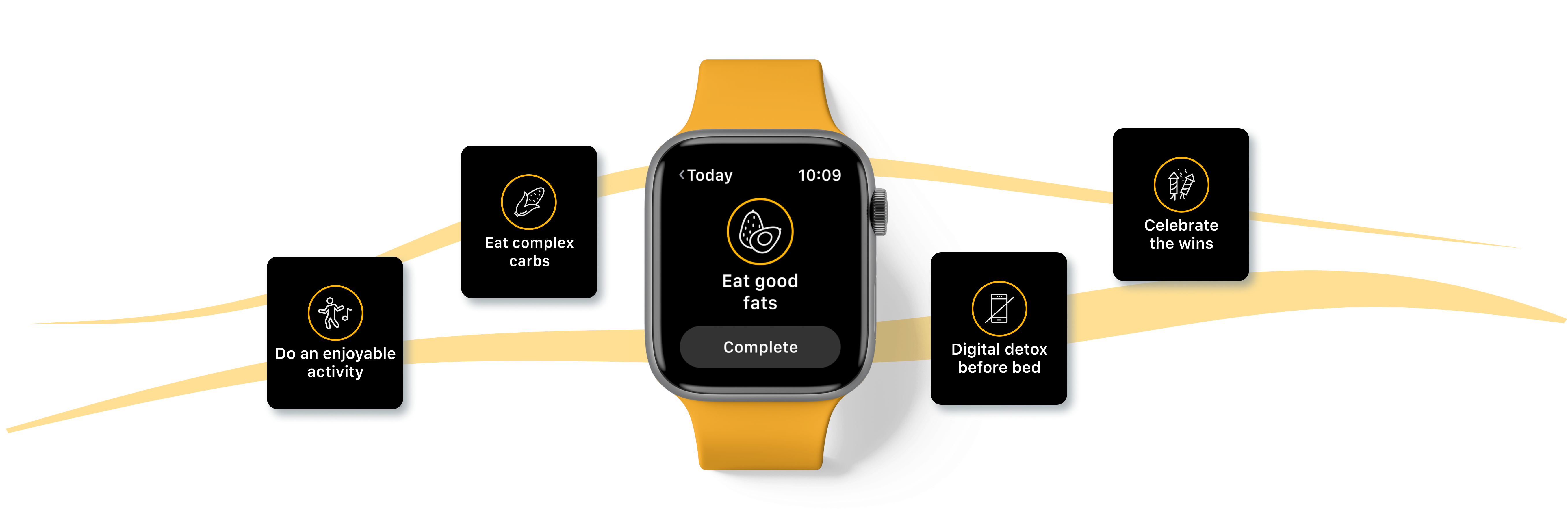 With just a couple of quick taps, clients can use the Apple Watch App to quickly check off scheduled habits as they complete them throughout the day.