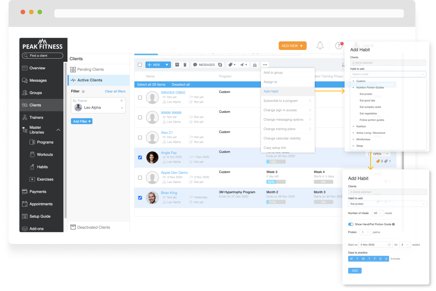 - From the Clients page to assign habits to multiple clients