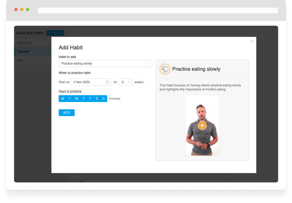Each of our ready-made habits comes with a video lesson explaining how to practice the habit and why your clients should try to make it part of their lifestyle.